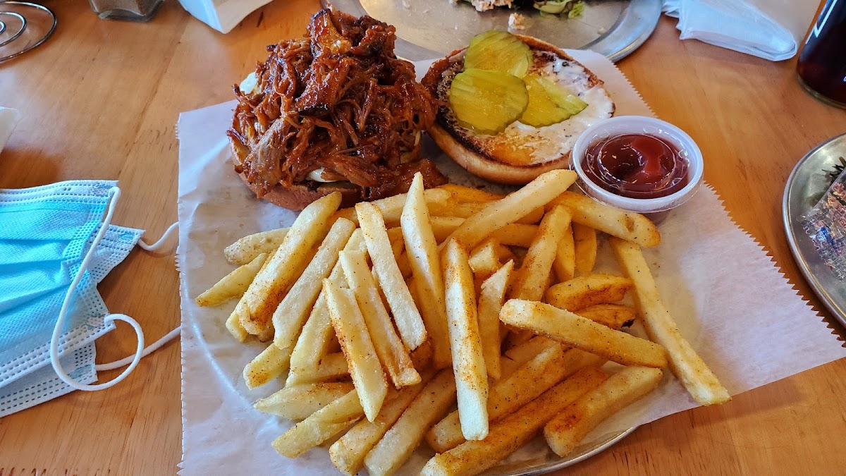 What a hidden gem, quiet atmosphere and great food. We had appetizers and the portions were amazing. Blackened shrimp natchos and the Pig fries (sweet potato fries smothered in the best pulled pork I've ever had).